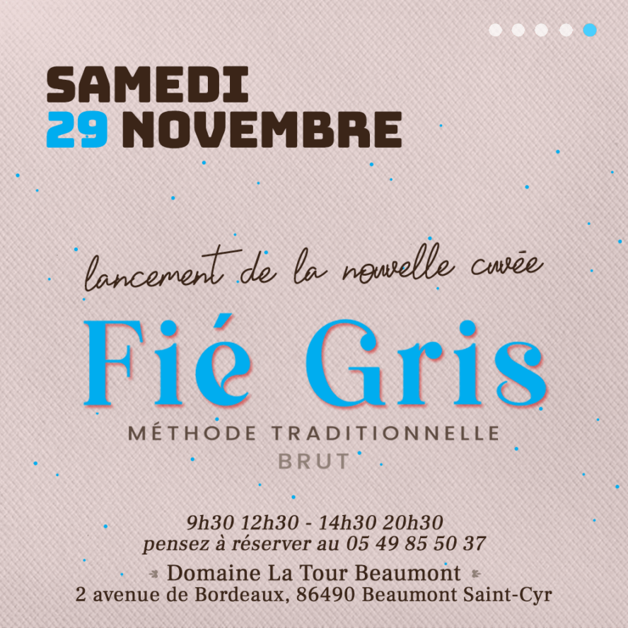 Le Domaine La Tour Beaumont vous ouvre ses portes pour une journée inédite et festive à l’occasion du lancement de sa nouvelle cuvée : Le Fié Gris Méthode Traditionnelle Brut